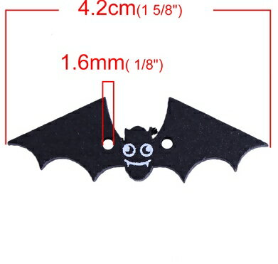 ●少量取寄品●【クラフトボタン】ハロウィンコウモリボタン(100個) 木製ボタン/42mm×12mm