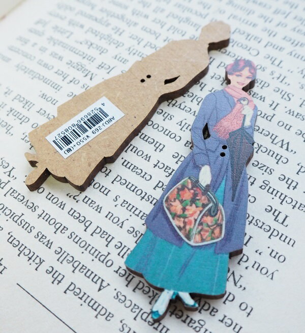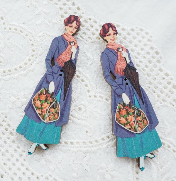 フランスボタン(パープルコートの女性)1個 レトロフレンチデザインボタン 木製ボタンフランス製フレンチボタン/ボタンの大きさ7cm×2.2cm