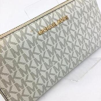 商 品 情 報 ◆ブランド名 MICHAEL KORS【マイケルコース】 ◆型番 35F8GTVE9B ◆商品名 ラウンドファスナー長財布 ◆サイズ 約 W20.5cm×H10cm×D2cm ◆シリアル - ◆仕様 ファスナー開閉式オープンポケット×2 お札入れ×2 カードポケット×8 小銭入れ×1 ◆素材/カラー レザー ホワイト ◆付属品 - ◆商品説明 マイケルコース ラウンドファスナー長財布です。