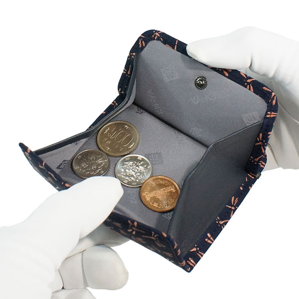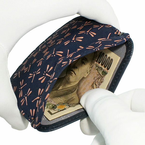 印伝 【甲州印伝 印傳屋 上原勇七】小銭入れ 薄型財布【1208 とんぼ 紺地×ピンク漆】 男性用 メンズ 女性用 レディース 鹿革 本革 レザー 薄い スリム シンプル ミニ財布 和柄 ブランド 【YM01】