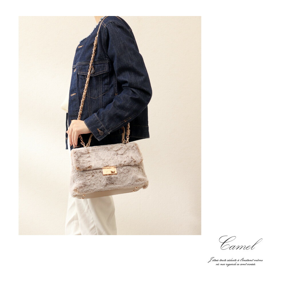 レザー素材×ふわふわのファーで異素材の組み合わせが印象的なバッグ。