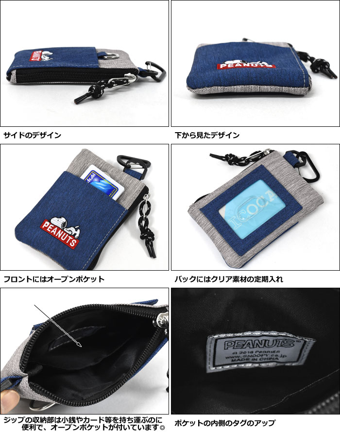 ナイロンキャンバス スヌーピー ジョークール カラビナ付き パスポーチ /レディース メンズ パスケース 定期入れ カード入れ カードケース icカード 小銭 小銭入れ付き カラビナ ミニポーチ かわいい おしゃれ SNOOPY キャラクター ジョー・クール 刺繍 ナイロン/ r